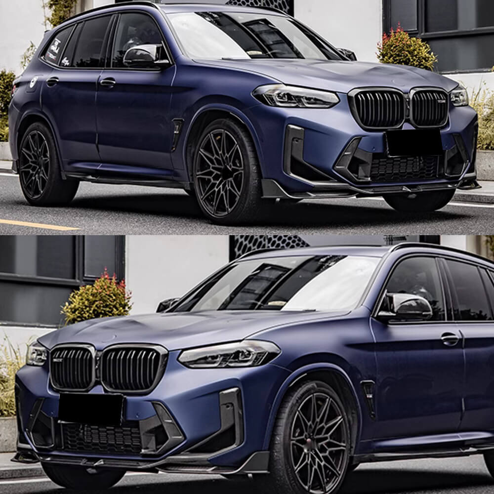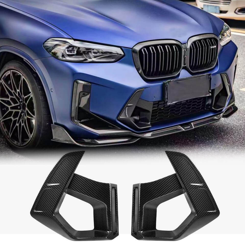 BMW X3M F97 Sport Utility 4ドア 22-23 ドライカーボン フロントバンパー エアベンド フィンs ボディキット サイドグリルセット
